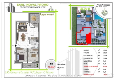Résidence La Perle Aigue-Marine – Bloc C Promoteur : SARL IBOVAL PROMO Emplacement : Aït Mendil, Wilaya de Béjaïa ________________________________________ Description du bien La SARL I