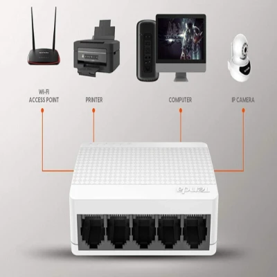 🔌 Switch Réseau 5 Ports 10/100 Mbps Tenda – Solution Réseau Économique, Simple et Fiable Le Switch Réseau Tenda 5 Ports 10/100 Mbps est un équipement compact, fiable et facile à