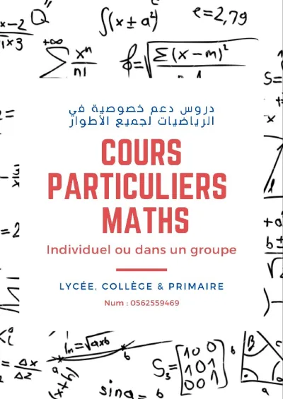 cours de soutien en maths دروس الدعم رياضيات للطور الثانوي Cours de math particulier ou en petit groupe chez nous ou a domicile. Pour des cours de soutien