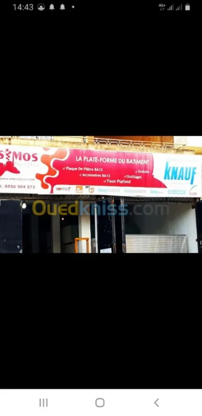 Vente du placoplatre KNAUF et TAOUAB, ainsi que l'ossature et tout accessoires liés,