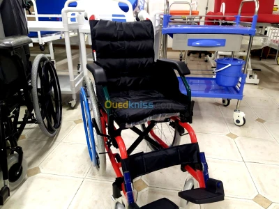 Fauteuil roulant pour enfant en aluminium confort roues pneumatiques accoudoirs inclinés + repose pieds détachables