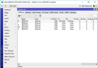 MikroTik RouterBOARD RB750GL CPU Atheros AR7242 400 MHz Architecture MIPS-BE 64 Mo de mémoire vive Stockage Flash 64 Mo 5 ports Ethernet 10/100/1000 Mbps Indicateur à LED Alimentation ext