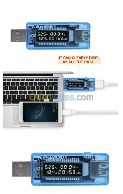 Caractéristiques: 100% neuf et de haute qualité. C'est le mini compteur USB. Il peut mesurer la tension, le courant et la capacité. Il peut afficher clairement toutes les données. Pe