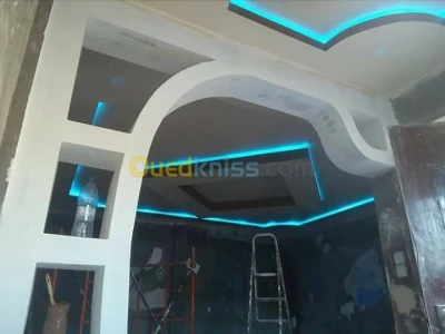 On vous offre nos services dans le domaine de décoration murale et Faux plafond décore en ba10ainsi toutes séparation murale en ba13 d'autre comme placard en placoplatre et avec ces derni
