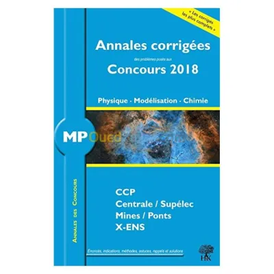 Titre : Physique, modélisation, chimie MP : annales corrigées des problèmes posés aux concours 2018 : CCP, Centrale-Supélec, Mines-Ponts, X-ENS Auteur : Aucun Editeur : H & K Année : 2