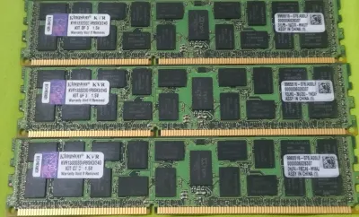 للبيع 3 رامات سيرفر أصلية من شركة Kingston، نوع DDR3 ECC Registered، كل قطعة بسعة 24GB (المجموع 72GB) وتردد 1333MHz. حالة ممتاز