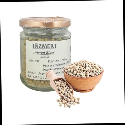 Le poivre blanc provient du même arbre que le poivre noir, de la famille des Pipéracées. Les grains de poivre mûrs de couleur rouge sont cueillis à pleine maturité et mis à tremper da