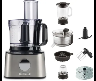 9 Accesoires : pour réaliser toutes vos préparations culinaires. Bol 3L avec couteau hachoir, blender 1,25L, mini hachoir, 3 disques pour râper trancher (fin et épais), disque émulsionn