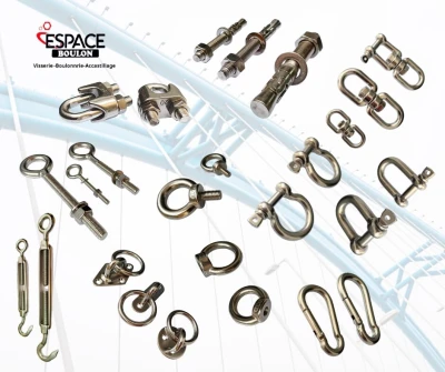 * Manille Droit * Manille Large * Anneau De Lavage Femelle * Anneau De Lavage Màle * Emerillon Fermé / Fermé * Emerillon Fermé / Ouvert * Attache corde * Serre Càble * Tendeur Cr