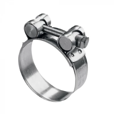 COLLIER MECANIQUE A TOURILLON INOX A2 "Collier mécanique INOX : spécial pour serrage de tuyaux lourds sur leurs embouts sur des installations mobiles et stationnaires . Les diamètre