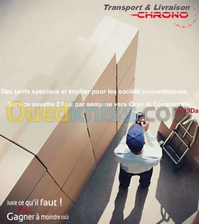 En vous propose les deux wilayas les plus fréquentées, Oran et Constantine pour 8.600DA. Transport de tous types de marchandises petit et moyen tonnage sur tout le territoire national.