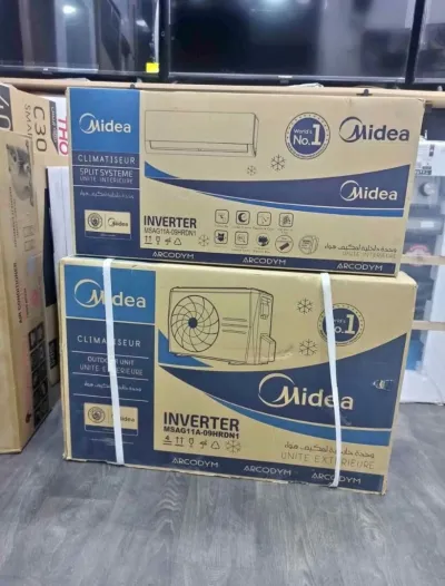 CLIMATISEUR MIDEAINVERTER 9 BTU Type: Inverter RÉFÉRENCE: MSFA-09HRDN1-Q Gaz: R410 Dimensions (H x L x P) : 29 x 72 x 21 cm PRIX : 70000 DA Livraison disponible pour Alger et en