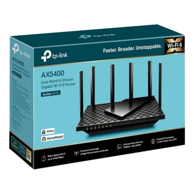 ✅ INFORMATIONS GÉNÉRALES : ✅ Désignation : TP-LINK ARCHER AX73 - ROUTEUR AX 5400 WIFI 6 - BI-BANDE - 5400 MBPS - 5 GHz - 5 PORTS GIGABIT -BLACK ✅ Marque : TP-LINK ✅ Modèle : ARCH