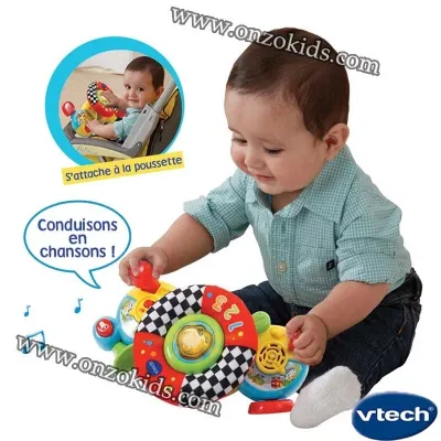 Bébé part à la découverte du monde grâce à son Baby volant Tut Tut Bolides. Comme sur un vrai tableau de bord, il dispose d’un clignotant, d’un levier de vitesses, d’une clé et