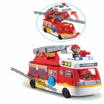 Un incendie s’est déclaré ! Vite, les Tut Tut Copains pompiers doivent aller l’éteindre ! Le Super camion caserne de pompiers est 2 en 1 : l’enfant peut le transformer en camion de