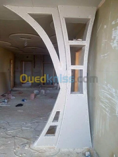 Esselem Alikom, je vous propose, la réalisation de : Faux plafond, simple ou avec décoration, Meuble TV, placard, etagères Cloisons de séparation ou création de nouvel espaces e