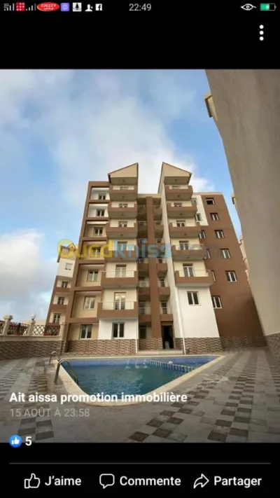 🏡 Résidence neuve en centre-ville de beni ksila : • 1 F3 et 4 F2 disponibles • 🏊♂️ Piscine collective • 🚗 Parking sécurisé • 🏖️ À 5 min de la plage • 🛒