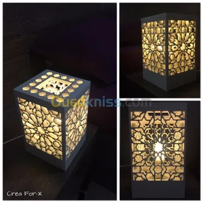 Crea For-x est spécialisée dans la réalisation de lampes à poser, luminaires, lampes de chevets, claustra, miroirs, objets de décorations. L'equipe Crea For-x travaille dur a fin de sa