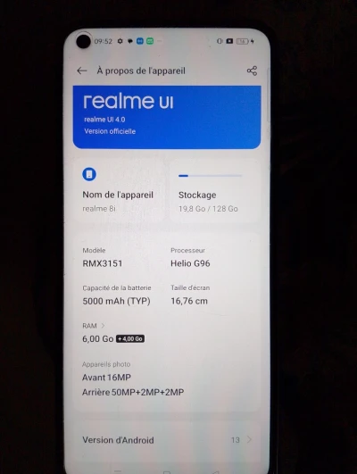 Realme 8i 128/6 Avec la boîte et chargeur et pochette Processeur helio g96 Ecran 120 hz