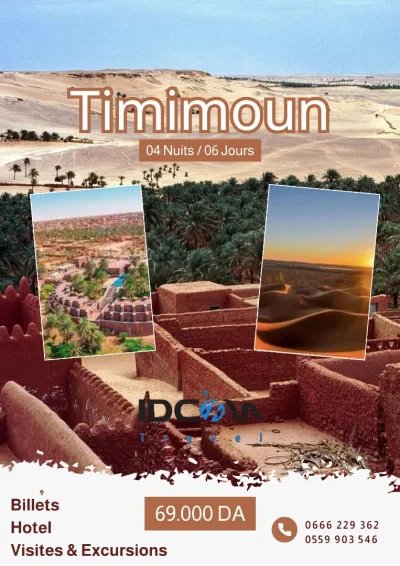 ****** Un voyage organisé à Timimoun ****** 4 Jours & 3 Nuitées PROGRAMME : 5 Jours & 4 Nuitées Nos départs : Du 30/12/2025 Au 02/01/2026 Plan du