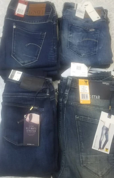 Lot de 100 jeans G-Star pour adolescentes (jeunes filles). Les jeans sont neufs avec étiquette de prix en euros (entre 90 et 180 € la pièces). Je les propose à un très bon prix, idéal