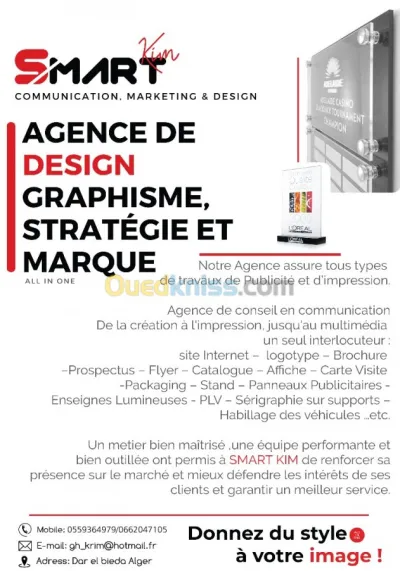 Notre Agence et nos services concernant les travaux de Publicité et l’impression et Decoration. De la création à l'impression, un seul interlocuteur: site Internet – logo – Brochur