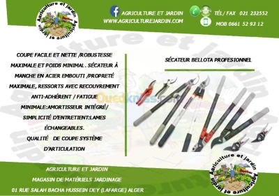 sécateur bellota disponible Veuillez vous adresser à notre magasin «AGRICULTURE ET JARDIN » , situé au: 01 rue Salah Bacha(LAFARGE) -Hussein Dey-Alger.( BACHA S SUR GOOGLE MAPS)