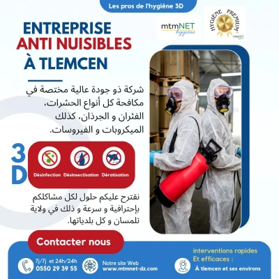 Nous sommes une entreprise professionnelle de dératisation, désinsectisation, désinfection, hygiène 3D et services nettoyage. On vous propose des solutions professionnelles radicales po