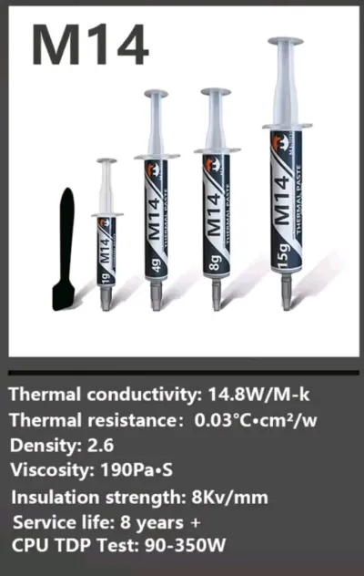 D'autres marques disponibles Cooler master Cryofuze 2g 4400 da Cooler master gel pro V2 1.5 ml 3400 da Arctic Mx4 4g 2000 Arctic Mx6 4g 2800 Arctic Mx6 8g 4500 Corsair TM30 3g 3200 Thermal