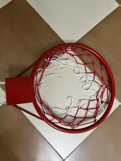 Anneau de basket en métal, diamètre 25 cm Cible / panneau arrière en plastique, dimensions 56.5× 40 cm Inclus : filet, balle de basketball et pompe