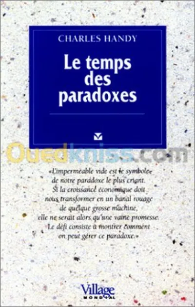 Titre : Le Temps des paradoxes Auteur : C.Handy Editeur : Village mondial Année : 1995 Théme : Economie Et Sciences De Gestion Sous-théme : Management ISBN : 9782842110017