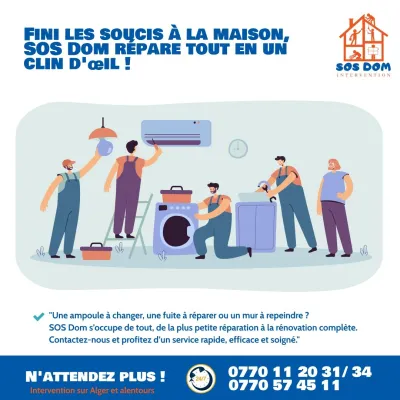 🔧 SOS Dom Interventions : Votre Expert à Domicile, 7j/24h ! 🔧 Un souci chez vous ? 🏡 Nos pros sont là pour tout, à toute heure ! ⚡ Électricité : Ampoules grillées ? Pannes