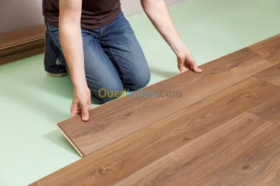 Revêtement sol intérieur en parquet bois stratifié + sous couche. En fourniture et fourniture et pose