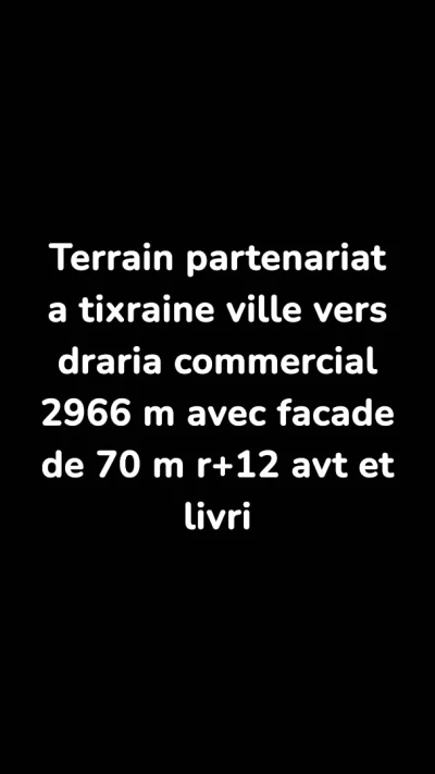 📢 Opportunité rare de partenariat – Terrain stratégique à Tixeraïne (centre-ville) Zaki Immobilier propose un terrain exceptionnel en partenariat, idéal pour un projet immobilier
