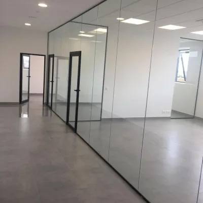 séparation pour bureau , clinique ou séjour sur mesure en verre trempé