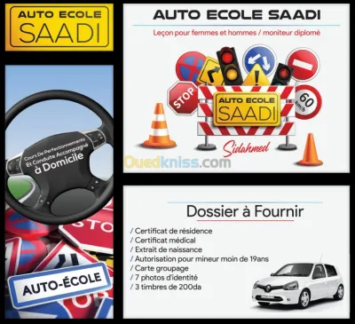 AUTO ECOLE SAADI + 30 d'Experience à Votre Service AUTOS / MOTOS / POIDS LOURDS Leçon pour Hommes et Femmes avec Moniteur et Monitrice Diplomé Possibilité de déplacement à DOMICIL