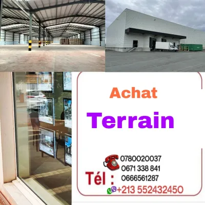 Bonjour, je recherche un terrain de 1 hectare à 50 hectares, sec ou nu, une zone d'activité. Sans intermédiaire. Numéro de téléphone sur la phot......صباح الخير..... ابحث