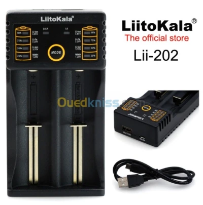 1. Entrée: câble ca 110-240V 50/60Hz (inclus)/cc 12V 1A (facultatif) 2. Tension de sortie: cc 4.2V pour Li-Ion 3.7V Cc 4.35V pour Li-Ion 3.8V( IMR) Cc 3.65V pour LiFePO4 Cc 1.48V pour
