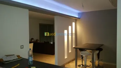 Tous travaux de place plâtre Faux plafond en placo plâtre simple ou avec décoration et en pvc Séparation en placo platre Parquet Revêtement en mdf