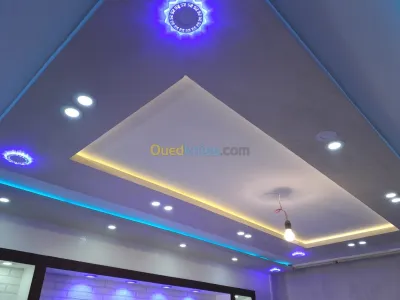 Je vous propse la pris en charge de la construction de vos maison -faut plafon décorative en ba 13 -cloison en place platre ba 13 en laine de verre,et lain de roche tt kes separation mu