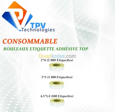 ROULEAU ETIQUETTE ADHESIVE TOP 2*4 (2 000 étq) ROULEAU ETIQUETTE ADHESIVE TOP 3*5 (1 000 étq) ROULEAU ETIQUETTE ADHESIVE TOP 2*4 ( 800 étq)