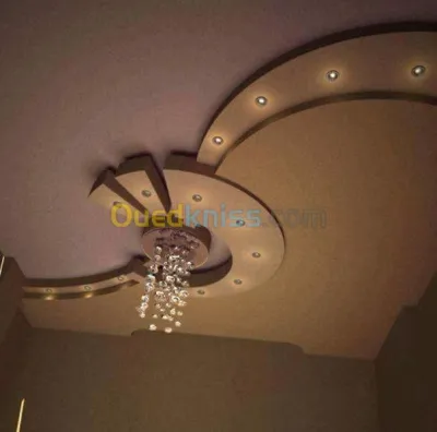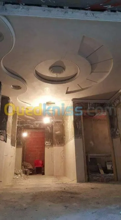 *بسم الله الرحمان الرحيم* -Prendre tous travaux du plaque au platre et PVC . travaux : faux plafond simple et dėcaler avec finition rosaces et faire des spots en le