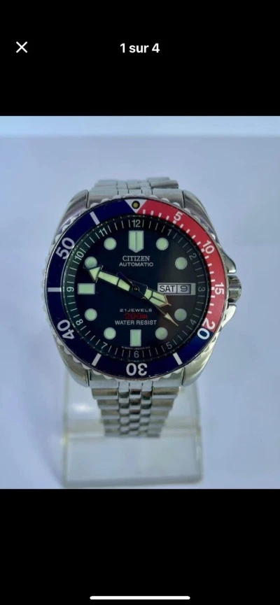 Citoyen NY2300-09G Rare montre de plongée avec lunette Pepsi bleu-rouge - rarement trouvée dans cet état. Parfait pour les poignets moyens et étroits. SPÉCIFICATIONS Boîtier : acier i
