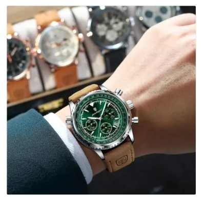 Montre poedagar homme originale tout neuf Quartz Case 13mm Diameter 43mm Band length 24mm Leather strap 60g Temps, calendrier + start/stop chronometer