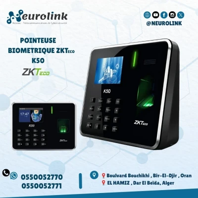 Pointeuse ZKTECO K50 Par Empreinte Digitale 🔐 Terminal de Pointage ZKTeco K50 – Le Choix des Entreprises Intelligentes Optimisez la gestion de présence de vos employés avec le ZKTec