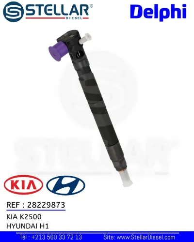 INJECTEUR KIA K2500 / HYUNDAI H1 MARQUE : DELPHI ORIGINE REFERENCE ORIGINAL : 28229873 , 33800-4A710 , 338OO-4A71O VEHICULE : KIA K2500 HYUNDAI H1 MOTEUR : 2.5 CRDi STELLAR DIESEL INJE