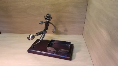 VENDU Figurine en acier "Footbaleur " avec porte cartes de visite , fait main