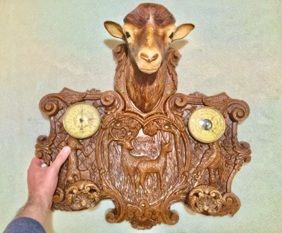 ديكور تحفة قديم لحمل الملابس يحتوي على مقياس الضغط الجوي و درجة الحرارة. صُنع فرنسي 🇫🇷 في سبعينيات (1970
