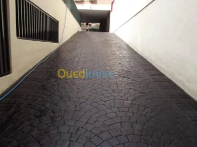 travaux d'aménagement Réalisation de béton imprimé, pose de pavé, carrelage, travaux d'étanchéité, et tt travaux de revêtement . Tag béton imprimé / pavé / bordure / es