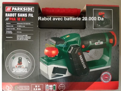 Ponceuse murs et sols moteur puissant 1050 watts à vitesse réglable 410/1900tr/mn, plateau de ponçage : 28000 Da Rabot sans fil batterie 12 V .... 20.000 Da Scie sauteuse sans fil batte